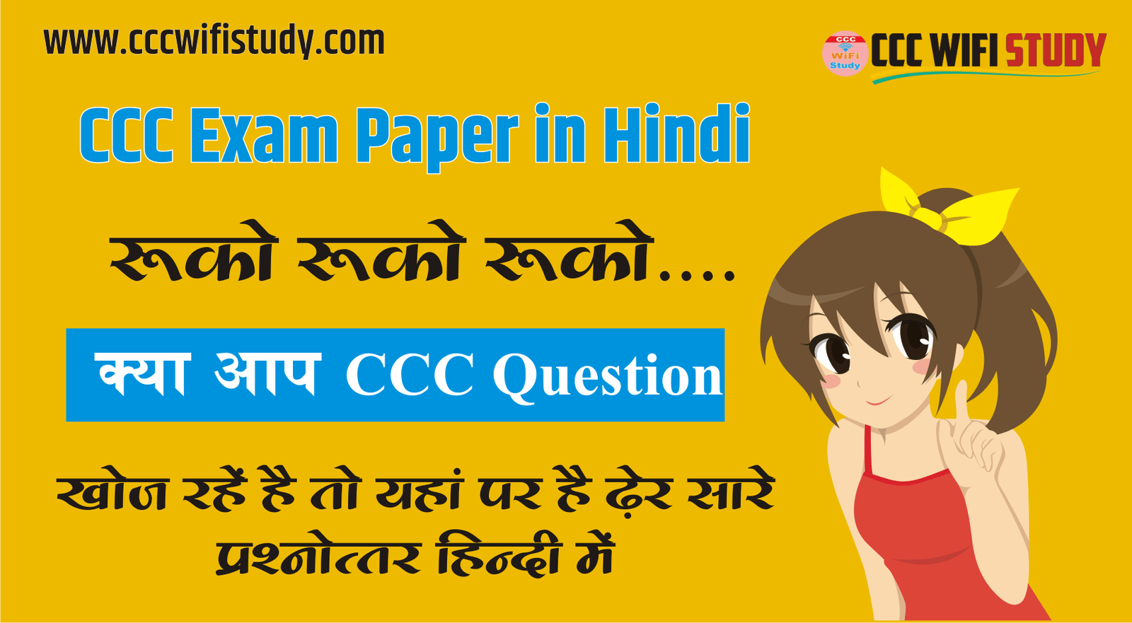 CCC Online Exam Question in Hindi, CCC Study Material , CCC Sample Paper फ्रेंड्स इस पोस्ट में आप सभी को CCC Exam के लिए सबसे टॉप प्रश्न मिलेगे जो कि CCC Exam में हर बार पूंछे जाते है|
